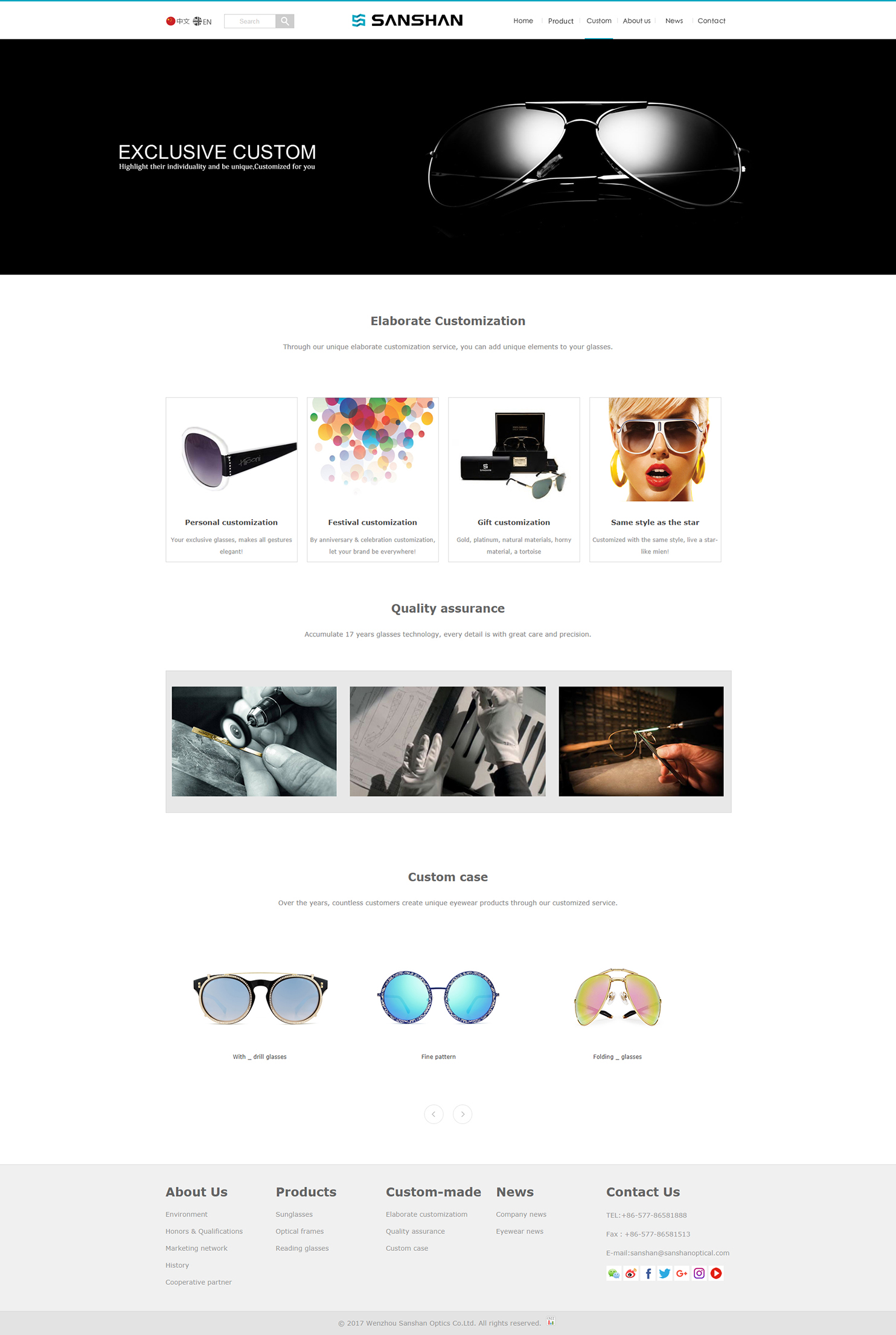 溫州三杉光學(xué)有限公司成立于1999年,是一家專業(yè)從事光學(xué)及太陽(yáng)眼鏡設(shè)計(jì)、開發(fā)、制造和銷售的大型民營(yíng)企業(yè)。